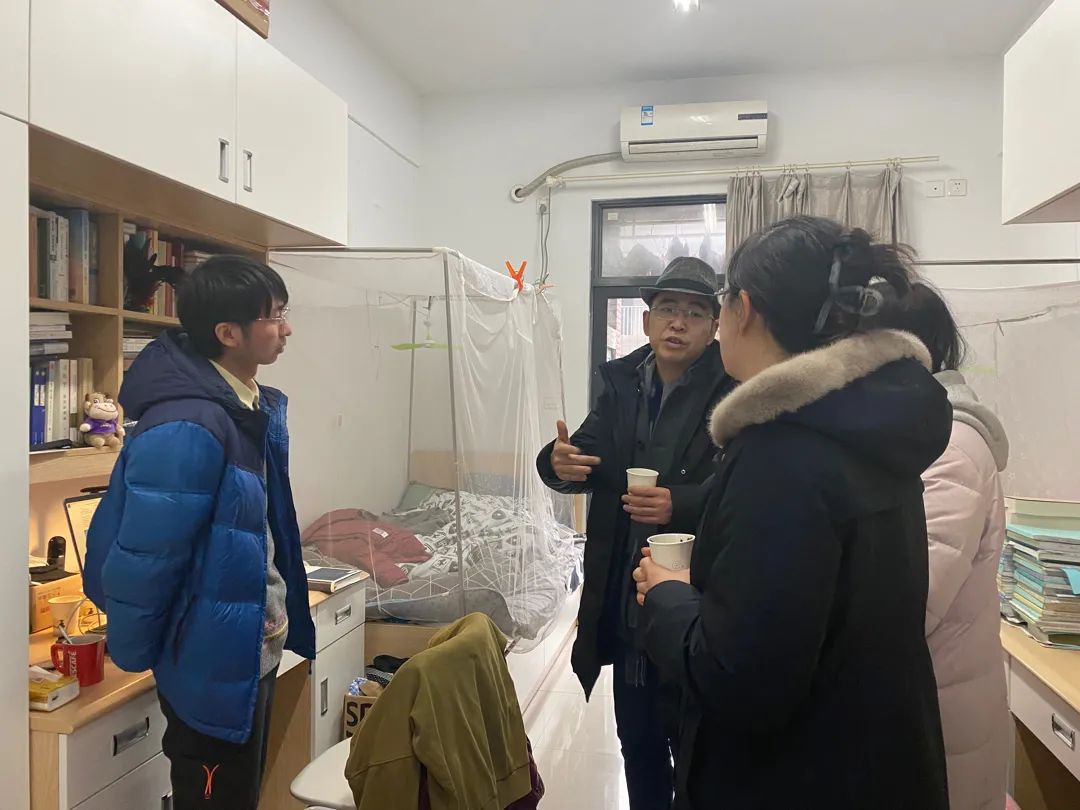 老师们于1月26日来到春节留校学生宿舍进行走访慰问。杏彩体育
