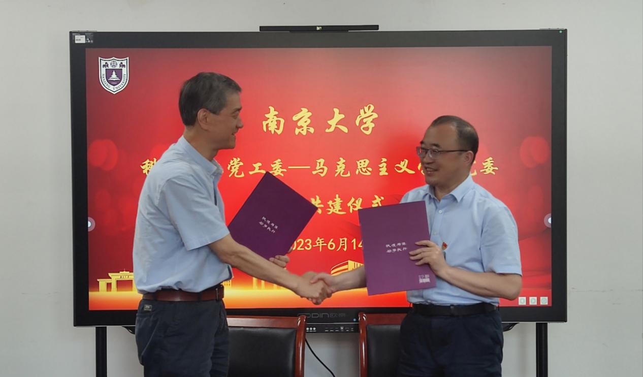 党委书记王建华、南京大学科技产业党工委书记陆江兵代表双方党(工)委共同签署了党建结对共建协议并合影留念。