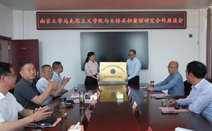 老师与相关负责同志就“新四军第5师和中原突围研究资料”等展开了座谈。双方进行了深入交流,达成了“院馆合作 互补共赢”的共识,签署了合作协议书,并举行了“南京大学中共党史党建研究院实习基地”授牌仪式。