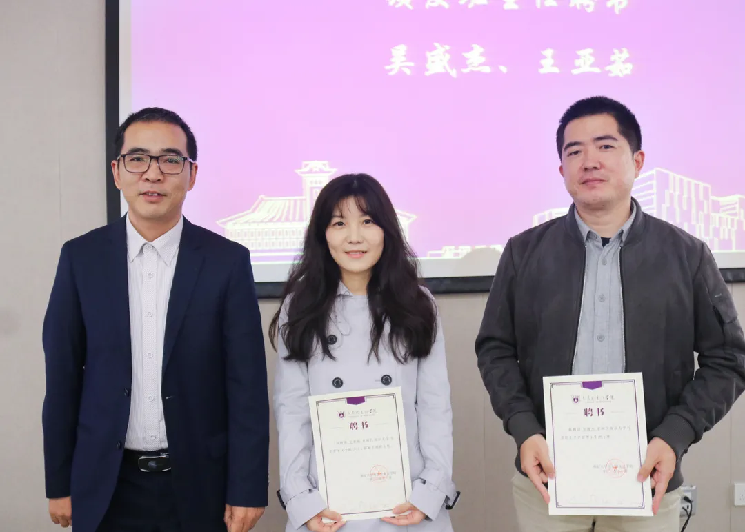 今年首次聘任优秀青年教师担任研究生班主任。胡大平院长为博士生班主任吴盛杰老师,2021级硕士生班主任王亚茹老师颁发了班主任聘书。