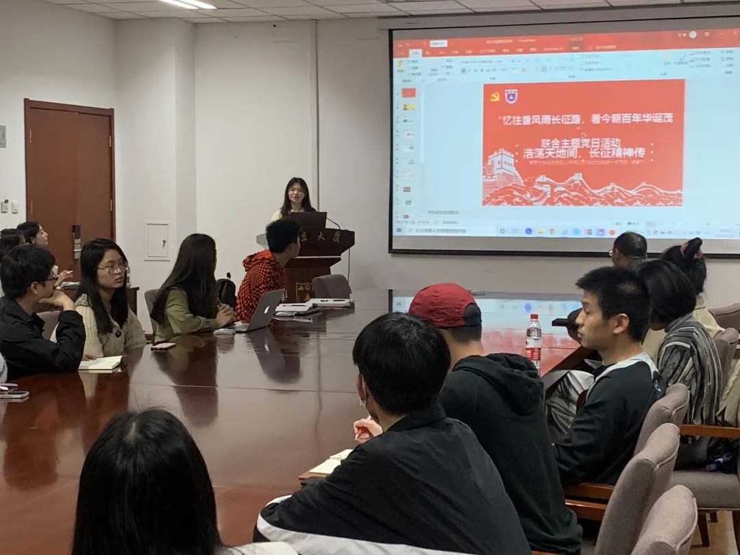 20硕自然党支部于昆山楼会议室537开展“忆往昔风雨长征路,看今朝百年华诞茂”联合主题党日活动。本次主题党日活动由地理与海洋科学杏彩体育