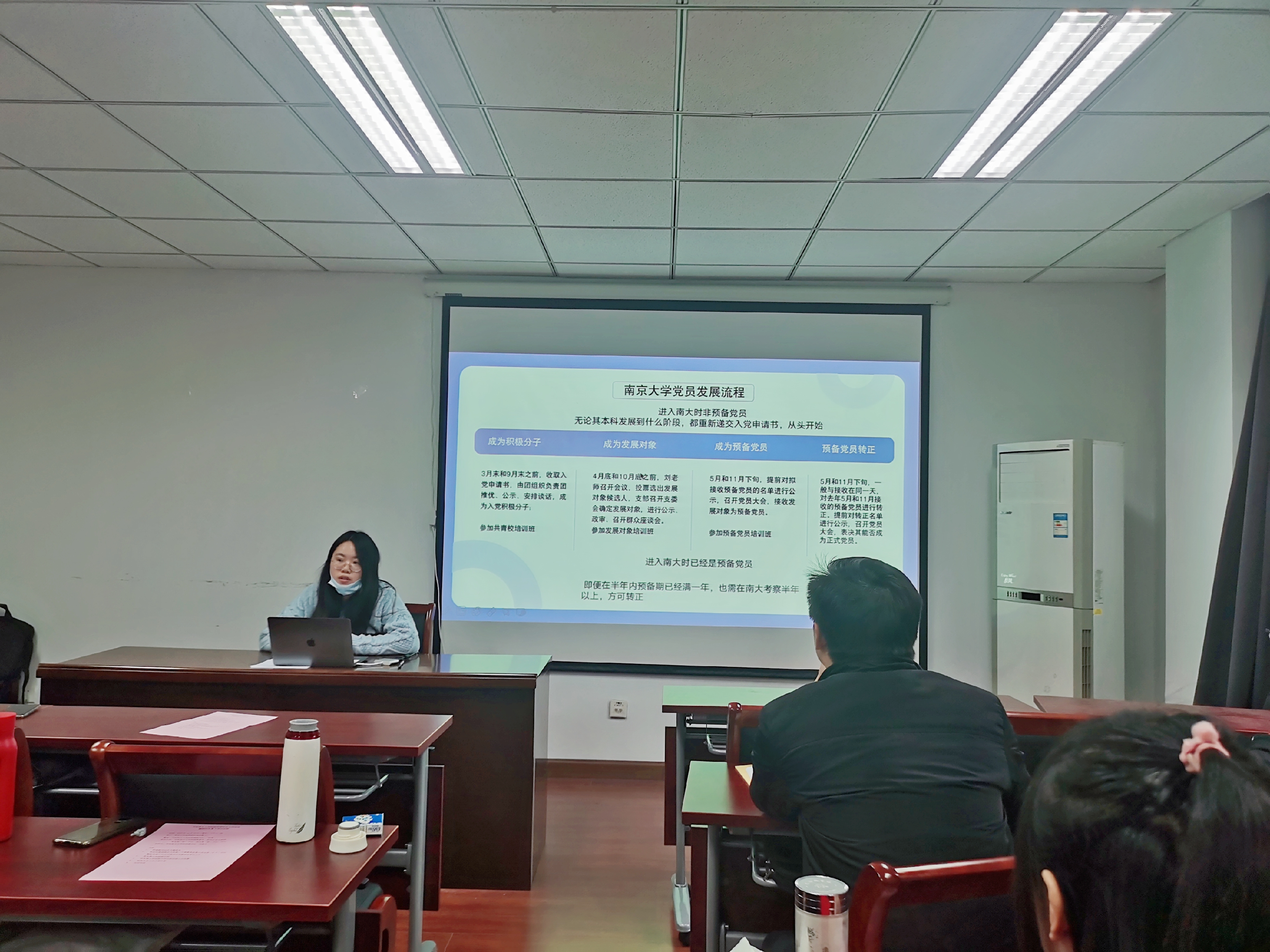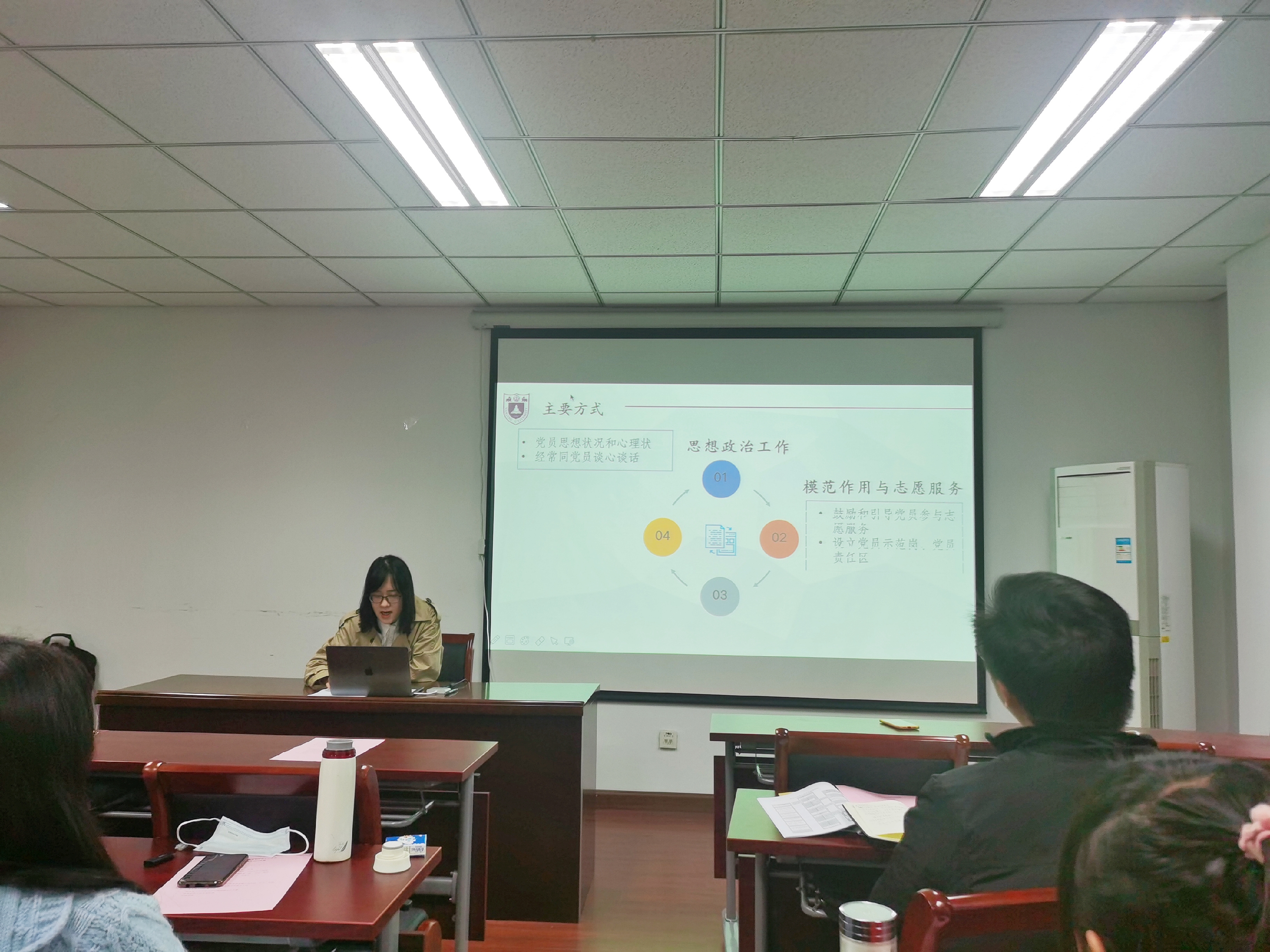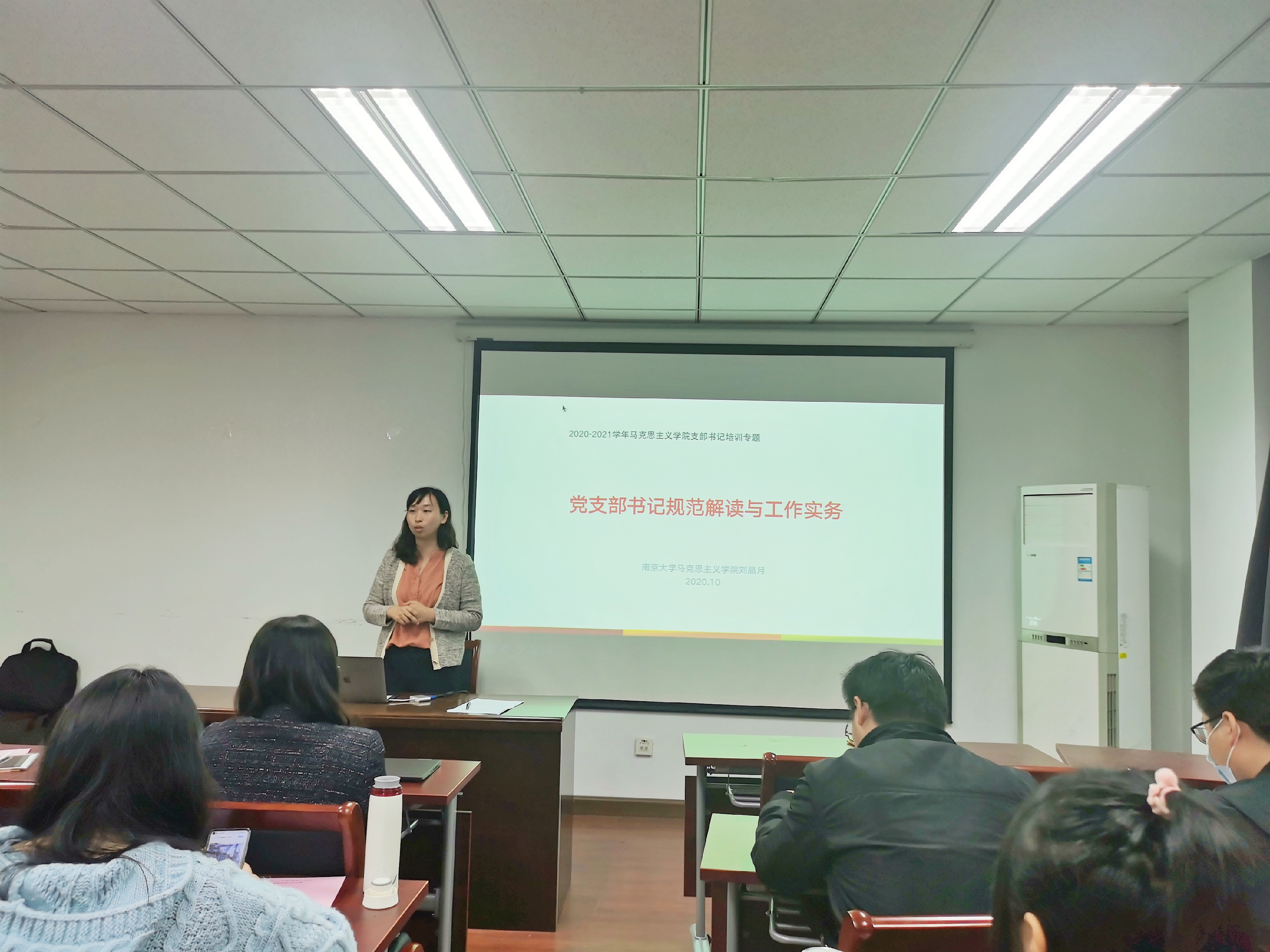 在党支部工作经验交流环节,党支部指导教师刘晶月从党支部书记工作规范与工作实务两方面进行讲解,号召党支部通过规范党支部建设、激发党支部活力,提升党支部工作质量。原研究生第二党支部书记周雪曼同学从党员发展工作经验出发,分享了自己的党支部工作经验与思考,具体讲解了党员发展工作及流程明细,同时从支委合作、规范流程、做好考勤记录等方面为大家分享了自己的工作心得与思考。原研究生第二党支部书记陈佳祺同学则从党员教育管理工作入手,向大家分享了她的党支部工作经验,她从党员教育管理的地位和原则、主要任务、主要方式、问题与经验四个角度为大家详细讲解了党员教育管理工作的重难点及解决方案,并通过生动的案例向大家展示了党员教育工作的多样化和丰富性。