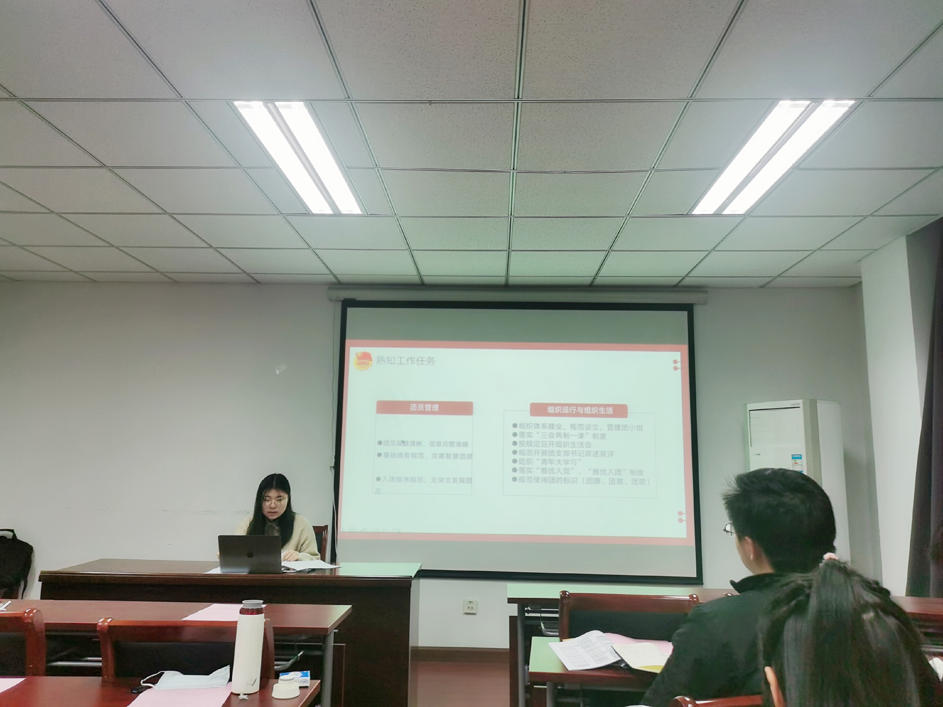 院学生团委副书记谢宇嘉宁以“凝心聚力,砥砺奋斗,在团组织建设中敢担当善作为”为题,对新学期主要团组织工作进行布置,她首先总结了近期团组织工作的开展情况,然后对“青引领”、“青组织”、“青培养”、“青服务”四项主题团日活动的开展进行了指导说明,同时号召大家极依托“学习强国”、“纽扣课堂”、“青年大学习”等学习载体,开展集学理性与趣味性相统一的团日活动,做敢担当善作为的团组织干部。