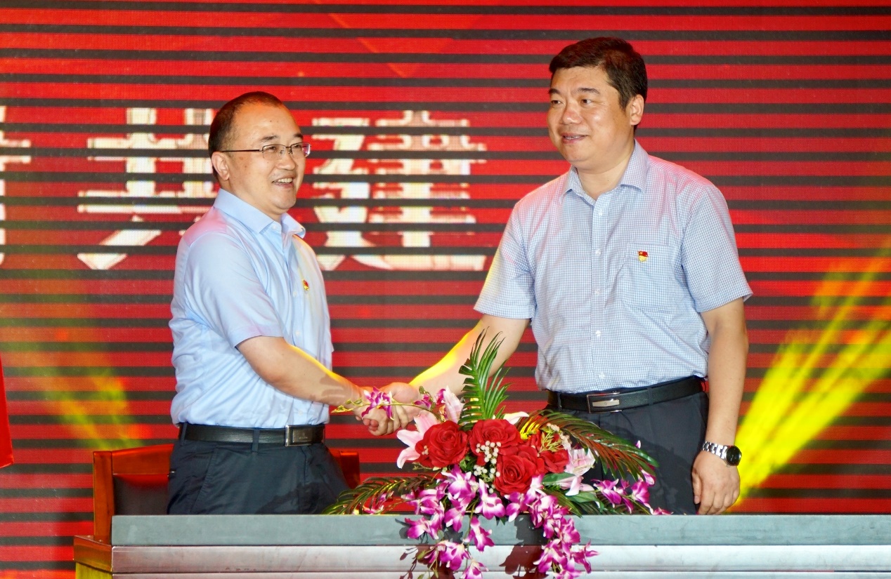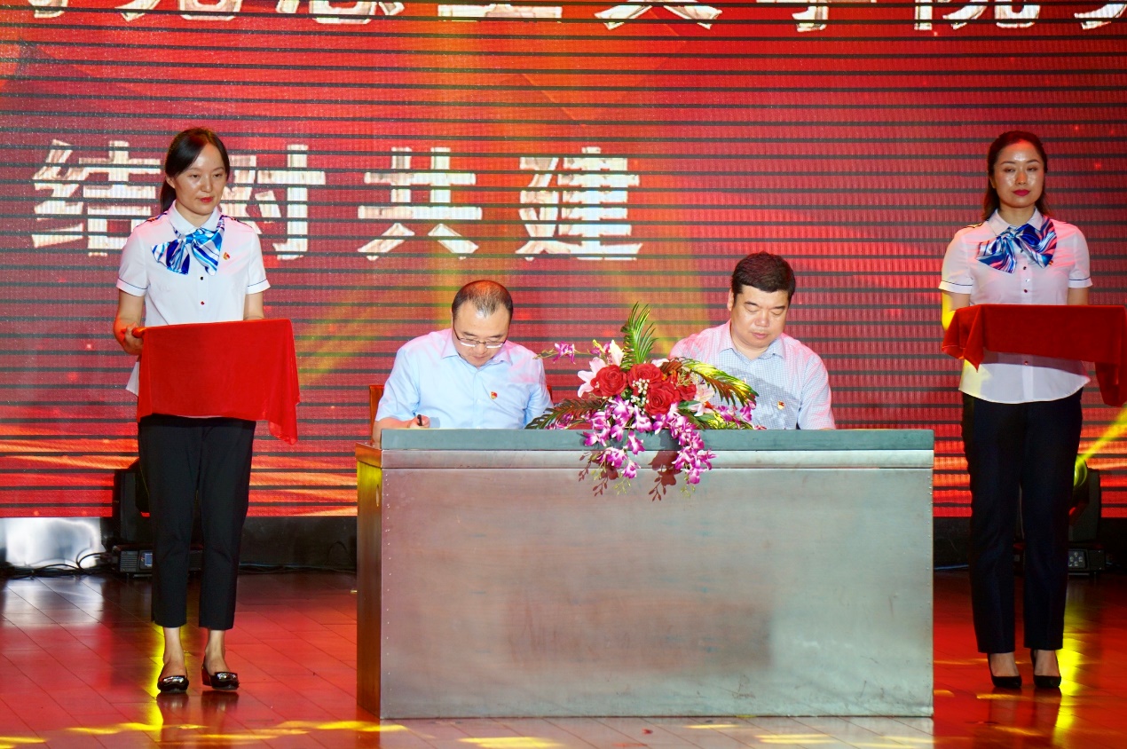 党委书记王建华与栖霞街道工委书记姚学敏代表双方,正式签署共建协议书。