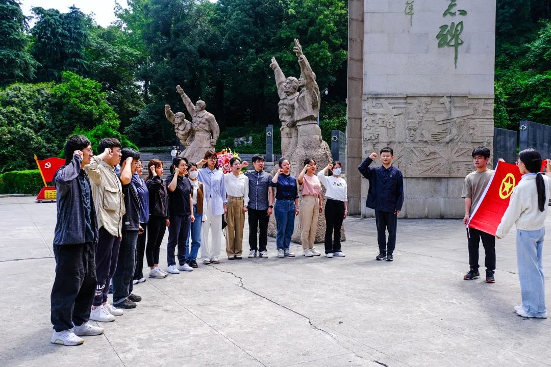 团员青年在纪念碑前重温入团誓词,感悟入团初心;团支委介绍2022—2023学年离团同学的基本情况,并为其颁发《离团纪念证书》,鼓励大家离团不离心、退团不褪色;2022—2023学年离团同学李新蕊、潘瑶、姚宇琦、谢瑞丰现场分享“我和共青团的故事”。