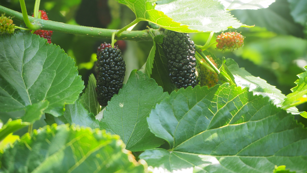 在桑葚基地,同学们体验了趣味十足的桑葚采摘活动。正值桑葚成熟的季节,乌黑饱满的桑葚挂满了枝头。白塔村村民种植的桑葚甘甜多汁,同学们争相品尝、赞不绝口。采摘结束后,附近的村民热心地向同学们分享了清洗桑葚汁的方法:“用没熟的桑果挤点水,手上的汁水就能洗掉了。”