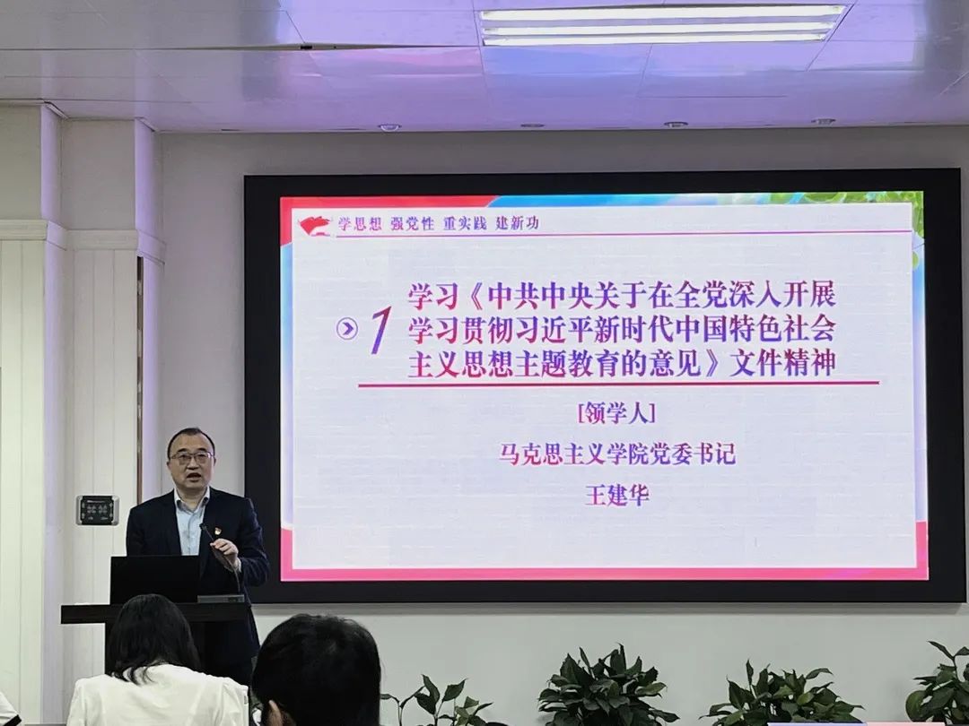 党委书记王建华领学《中共中央关于在全党深入开展学习贯彻习近平新时代中国特色社会主义思想主题教育的意见》文件精神。他解读了本次主题教育的重大意义与目标要求,并指出在主题教育中要坚持问题导向和系统导向,在动态过程中深刻把握“两个结合”深刻内涵,促进学习贯彻习近平新时代中国特色社会主义思想主题教育走深走实。