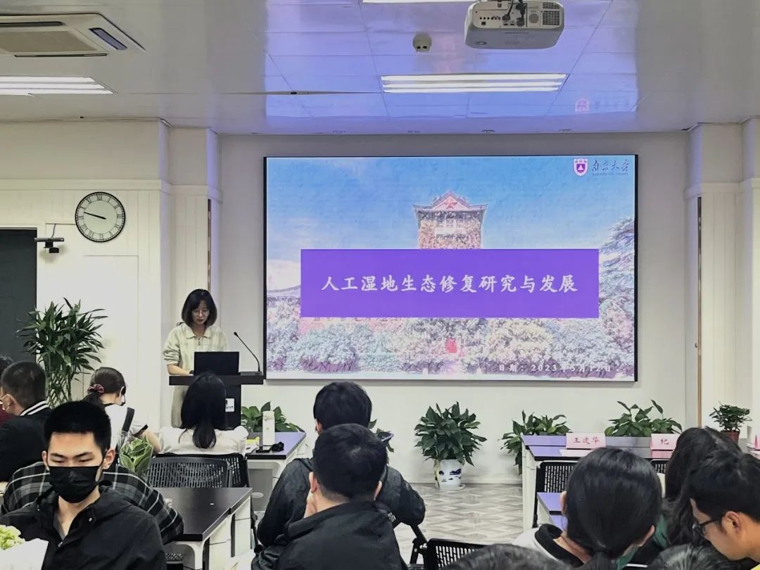 博士生李启明、赵雨梦同学介绍了她们在湿地和动物保护方面的科研经历。李启明同学以“人工湿地生态修复研究与发展”为题,分享了她在建筑废弃物在人工湿地中的资源化利用、全尺度人工湿地修复能力检测等方面的研究思路和方法。赵雨梦同学以“和麋鹿”为题,分享了她在大丰麋鹿国家级自然保护区发现的麋鹿生活趣事,为大家介绍了她在麋鹿认知、社会文化、决策方式与现象等问题上的研究心得。两位同学的分享各有风格,兼具理论性、知识性、故事性、趣味性,让大家充分体味到生态文明建设的实践内容、科研方法与重大意义。