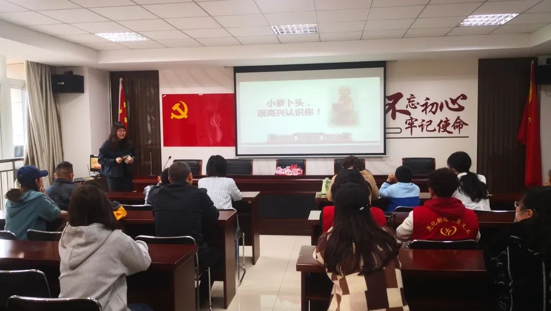 何雨潼讲师从小萝卜头是谁、为什么叫小萝卜头、小萝卜头做了什么三个方面为同学们介绍了这位少年英雄的英勇事迹。在授课过程中同学们不仅认真听讲,而且还勇于提出自己的困惑。当何雨潼讲师讲到小萝卜头在阴暗的牢房里仍勤奋学习时,同学们问:“老师,他学的是语文、数学和英语吗?他学不学信息课呀?”;当讲到小萝卜头非常珍惜自己一小段铅笔时,同学们好奇:“老师,他有削笔刀吗?”。何雨潼讲师不仅一一解答了同学们的疑惑,而且用生动形象的语言为同学们勾勒出小萝卜头聪明伶俐、刻苦学习的模样。有一位小朋友受到启发,为大家讲述了革命烈士刘胡兰的故事,赢得了大家的掌声。最后,何雨潼激励同学们以小萝卜头为榜样,勤奋学习,热爱祖国成为一名自立自信的小学生。