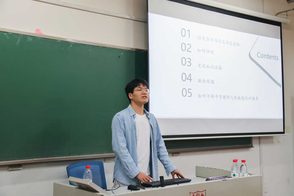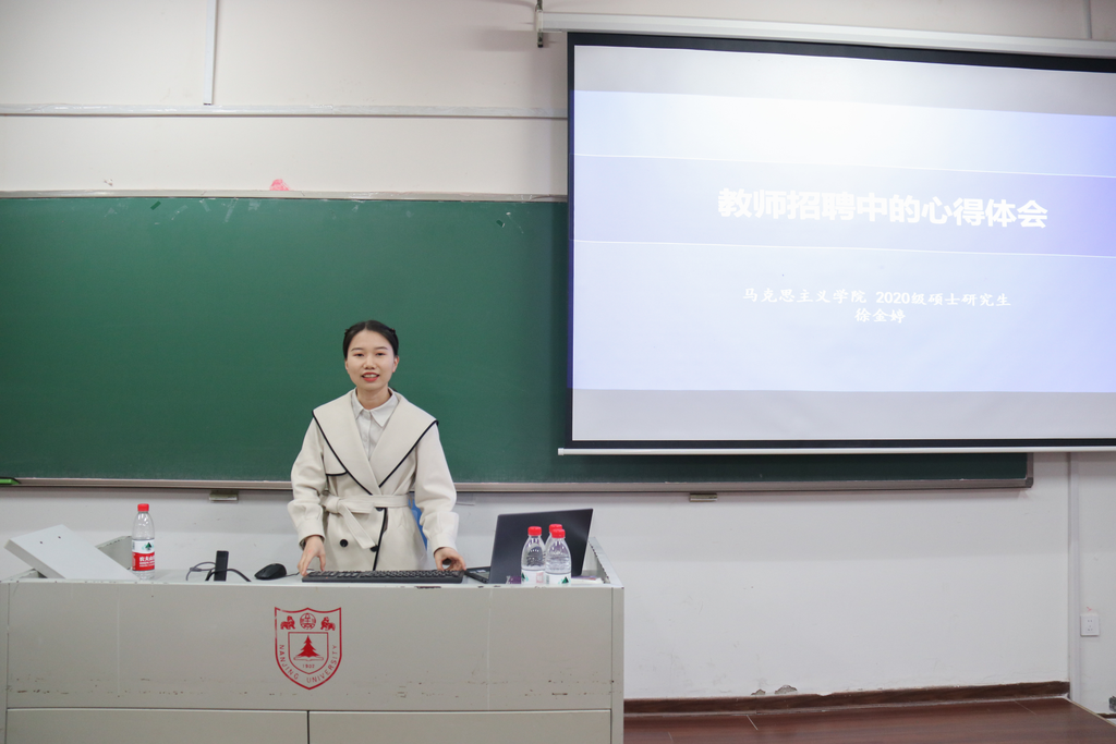 最后,主持人董梦圆同学为本次分享会进行总结,衷心祝愿大家能明确自身定位,提升求职技巧,圆梦教师职业理想。在热烈的掌声中,本次优秀毕业生求职经验分享会之中学教师专场圆满结束。