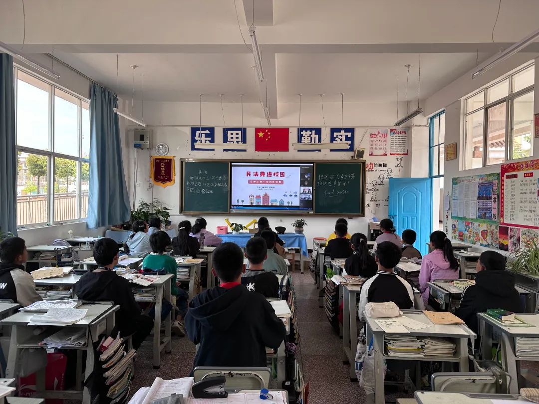 中国近现代史基本问题研究专业2022级硕士研究生顾雪雨和郭建琪同学为妥甸中学的同学们带来了以《民法典进校园》为题的精彩课程。