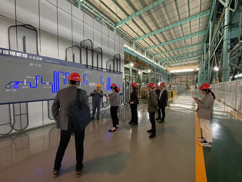 接着纲要教研室支部在企业技术骨干的陪同之下参观了梅钢两条主要的生产线——热轧1780车间和冷轧镀锡车间。壮观的钢铁生产车间机器轰鸣、热浪滚滚,现场却几乎见不到一个工人。经现场骨干技术人员介绍,梅钢各条生产线经过几轮的技术改造,已基本实现了自动化、智能化,只需少许工作人员的操作和检修。各位党员教师纷纷表示,这一阶段的实地考察收获颇丰,不仅现场体会到了钢铁作为“新中国工业基石”的根本所在,更见证了科技进步对生产力发展的巨大贡献。