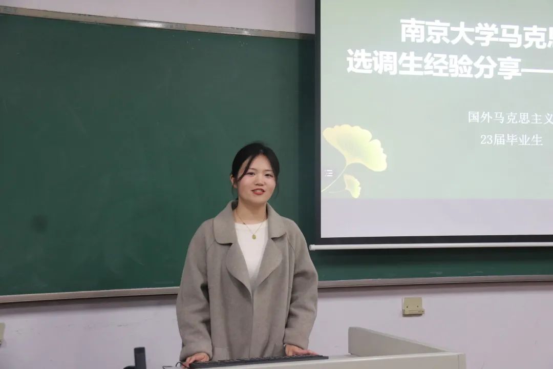 2020级中国近现代史基本问题研究专业的王冉学长、马克思主义基本原理专业的李润学姐、国外马克思主义研究专业的储馨竹学姐和马克思主义中国化研究专业的葛浩学长四位嘉宾进行分享,会议由陈政昊同学主持。四位学长学姐从政策解读、岗位选择、备考经历、考察准备、心态建设等多角度分享备考经验,并针对同学们的具体问题提出宝贵建议,增加同学们对选调生的认知了解,帮助同学们进一步明确未来就业方向。