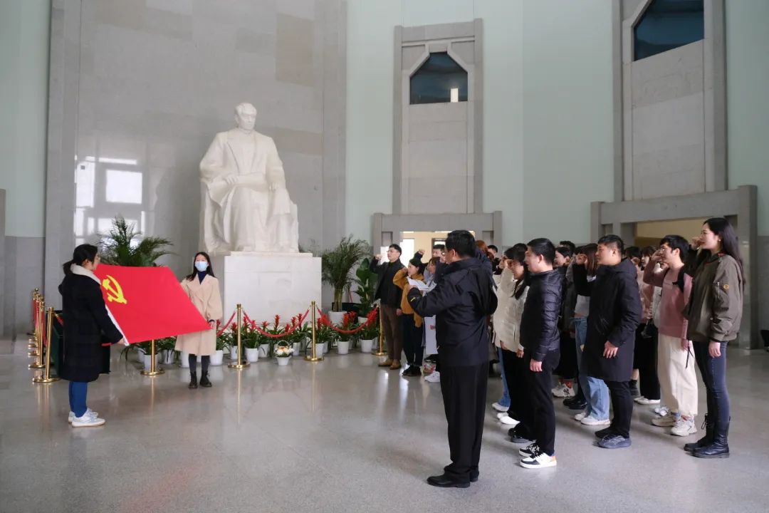 同学们怀着十分崇敬的心情,肃立于周恩来同志汉白玉雕像前,在博士生一支部书记王涛的带领下重温入党誓词。面向鲜红的中国共产党党旗,在伟人像前,全体党员举起右拳,庄严宣誓,铿锵有力的宣誓声响彻大厅。宣誓结束后,同学们继续参观周恩来生平业绩陈列馆、仿北京中南海西花厅并瞻仰了周恩来铜像等。