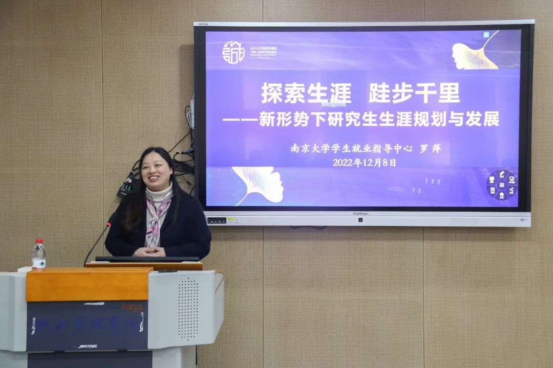 “师语撷珍 以心育新”系列讲座第七期在仙林校区圣达楼100B教室成功举办。本期讲座由南京大学就业指导中心副主任罗萍老师主讲,杏彩体育