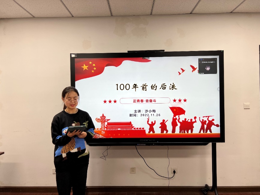 思想政治教育专业2021级硕士研究生沙小梅同学进行了授课,她授课的主题是《100年前的后浪》,云南省双柏县第一中学的同学们共同参与本次线上课程。