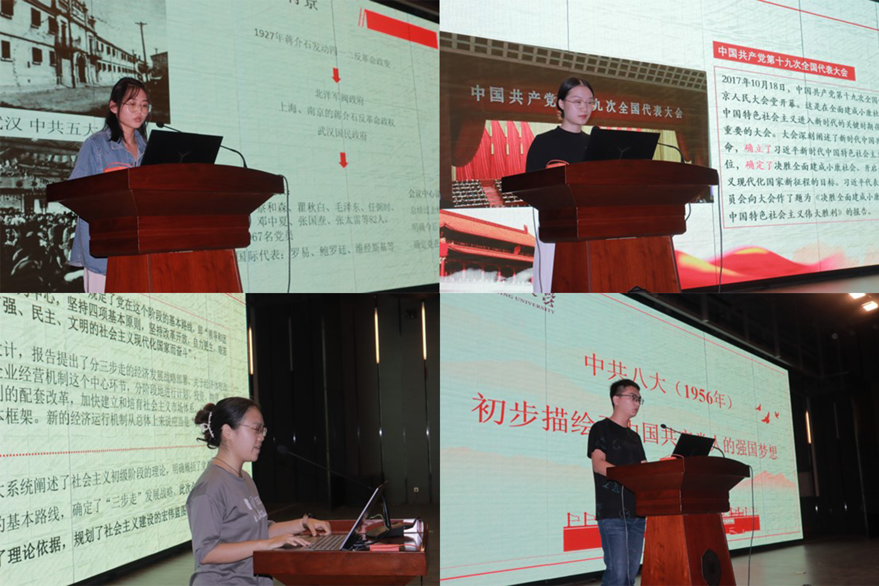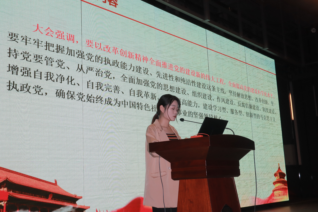 21级硕士生第一党支部的四位成员为大家介绍了党的十六大到十九大。顾静雅同志讲述了党的十六大,是中国共产党在新世纪召开的第一次全国代表大会,也是在我国进入全面建设小康社会、加快推进社会主义现代化的新的发展阶段召开的一次十分重要的代表大会。此次大会把“三个代表”重要思想和马克思列宁主义、毛泽东思想、邓小平理论一道确立为中国共产党的指导思想,是一个历史性贡献,具有划时代的意义。