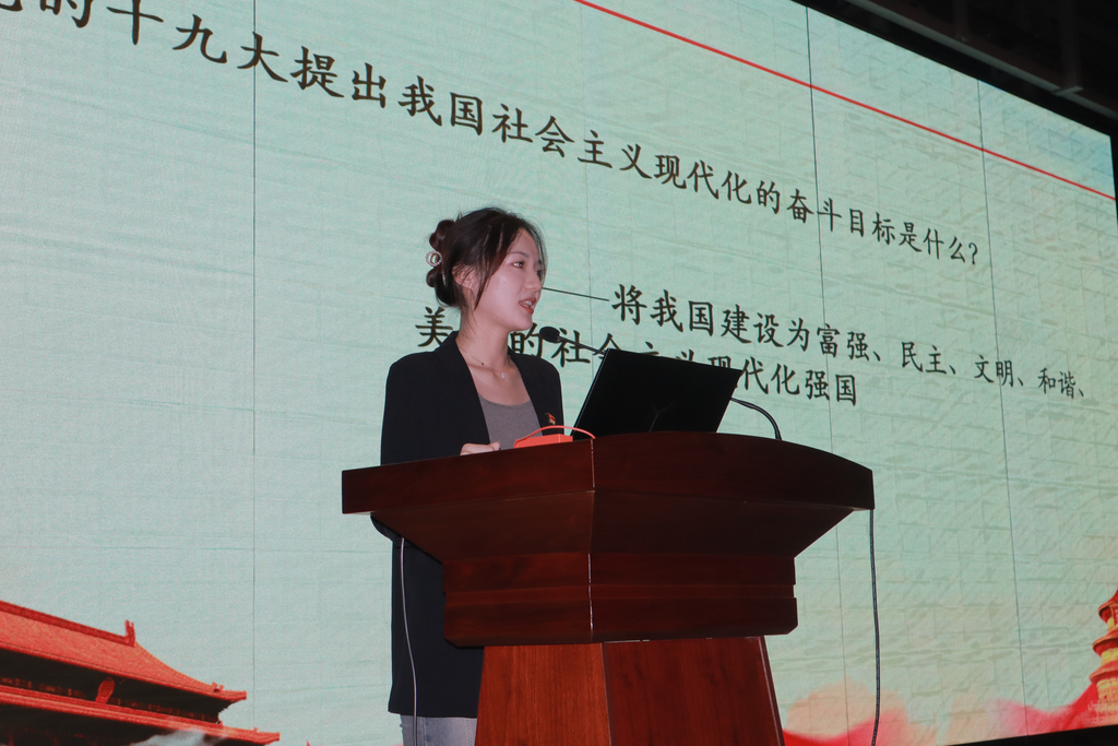 覃钰淇同志讲述了党的十九大,首先介绍了十九大的会议安排形式的创新之举,随后通过对《十九大报告》中对十九大的主题、对我国主要矛盾的变化、新的历史方位以及我国社会主义现代化的目标的论述进行介绍分析,对十九大精神进行了解读。学习十九大精神,为夺取新时代中国特色社会主义伟大胜利、实现中华民族伟大复兴的中国梦、实现人民对美好生活的向往继续奋斗,具有重大现实意义和深远历史意义。最后覃钰淇同志也向现场同学提出了关于问题,并送上了杏彩体育官网