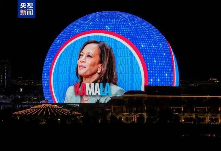 2024年选举期间,哈里斯团队在拉斯韦加斯地标建筑上投放巨幅广告,一天就“烧掉”45万美元。
